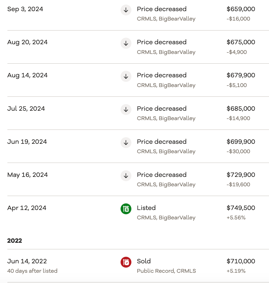 As noted in the original post, Moonridge is absolutely inundated with recent buyers desperately vying for the same handful of qualified buyers. Maybe this seller will get lucky and find someone to pay full boat, but I have a feeling more price cuts are on the way.