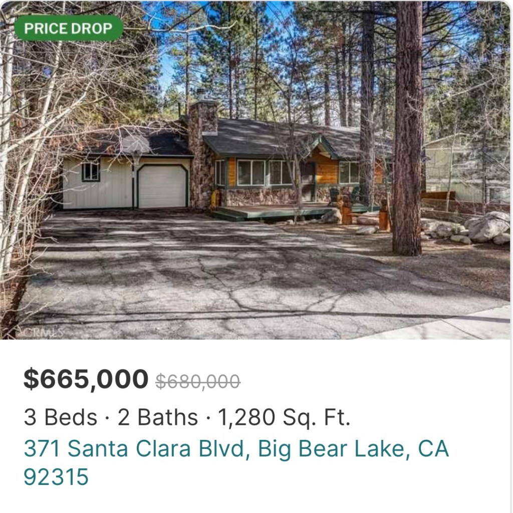 Redfin: https://www.redfin.com/CA/Big-Bear-Lake/371-Santa-Clara-Blvd-92315/home/4113833