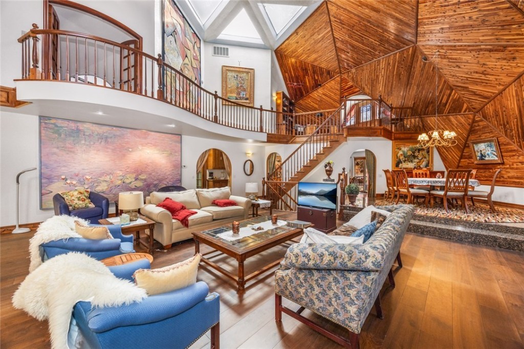 Rare opportunity to own this authentic Geodesic Dome Home in the Upper Moonridge area of Big Bear City. Once selected by the LA Times as Featured Property of the Week in the Dec 21, 2007 weekend issue. Features 2 Master Bedrooms- one with Sauna. Situated backing to the National Forest enjoy the privacy, hiking and beautiful views. The location offers unparalleled privacy and quietude even though it’s only a few minutes from Bear Mountain ski slopes as well as the bonus of being in Moonridge but in Big Bear City. A metal picket fence surrounds the entire property. Authentic Dome homes offer some advantages over traditional homes like energy efficiency, sound and music experience. This home will likely impress any owner/visitor or renter. A haven for entertaining especially with the restaurant size bar and soapstone standalone 2nd fireplace. No overhead utility wires in this neighborhood. You have direct access to entire forest from the backyard and/or other access points. A true gem!