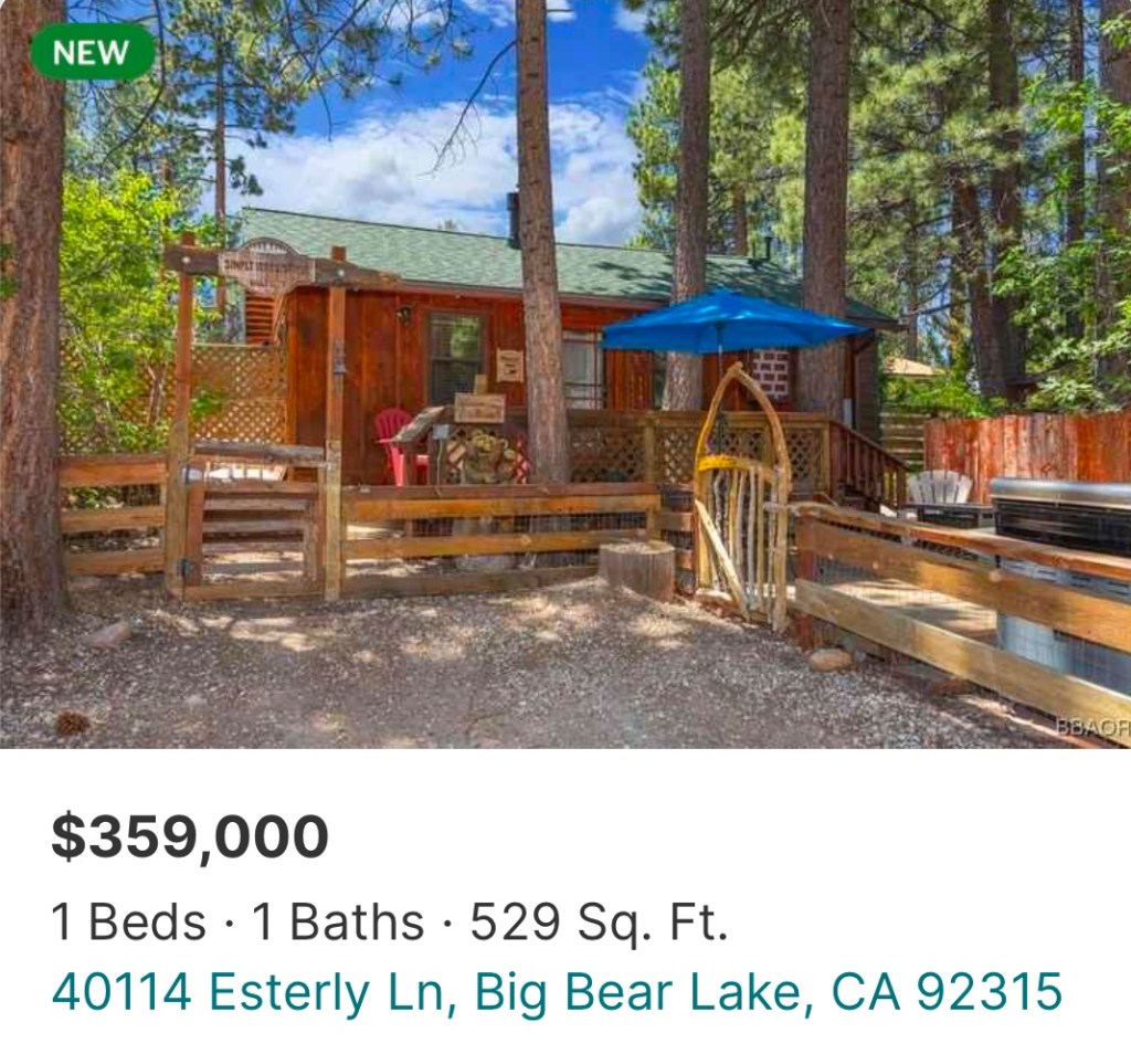 For reference, this cabin on the same street with an extra bedroom and 35-percent more square footage can’t even get $360,000:
