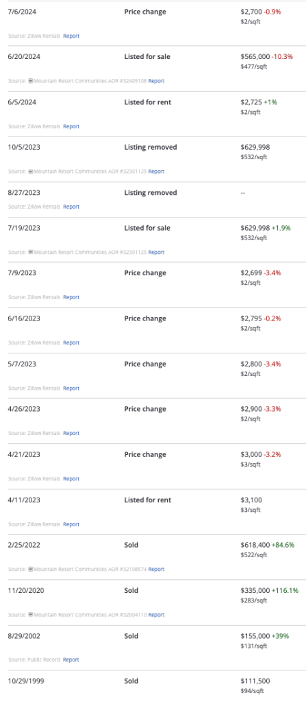 Unfortunately for Buyer D, things got crazy in the wrong direction. After significantly overpaying in February 2022 – literally a month before the Federal Reserve started jacking rates – in July 2023 he tried to wriggle out of his predicament with a ridiculous asking price of $629,998.
